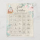 This baby shower game card features beautiful soft florals and a vintage map background.