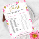 A delicate modern floral bridal shower "Find the Guest" game , the design features a pink and gold floral pattern, this card is personalised with the bride-to-be name and the shower date.