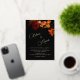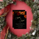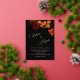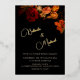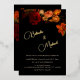 Colorful painted flowers and bride and groom names in an elegant classic calligraphic script on a black background wedding invitation.