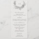 A refined botanical wedding menu card featuring a delicate wreath illustration, soft neutral tones, and elegant minimalist typography. Designed to complement a fine art wedding suite, this menu adds a sophisticated and cohesive touch to your reception tablescape. Perfect for garden, vineyard, and classic romantic weddings, it showcases each course with understated elegance while enhancing a timeless, elevated dining experience.