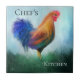 Kitchen tile featuring a colourful fine art painting of a rooster and your custom texts (optional). A beautiful gift for anyone who loves to cook or to add style and atmosphere to a kitchen.