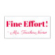 This motivating rubber stamp design features the inspiring feedback message "Fine Effort!" and a personalised teacher name. It could be used by a teacher, educator, instructor, or tutor when marking assignments, to indicate that a student has done well.