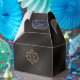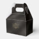 Delicate filigree frames, borders and ornaments, textured in faux gold foil, decorate the pieces of this elegant wedding suite. This simple but elegant favour box features a scrollwork frame to hold your initials and wedding date on the front and optional 'Thank You' on the back. Choose any background colour or leave the warm charcoal, textured-effect we've supplied. Add your initials and wedding date using the provided template. Search ID871 to see the complete wedding collection and other colour choices for this design.