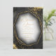 A watercolor background in shades from charcoal grey to black is topped by an abstract of fine gold lines and glittering lighting effects to create the pieces of this beautiful wedding suite. The Rehearsal Dinner invitation shown here also features a beautiful gradient frame to hold all your text. Easily add your own names, wedding date and event details using the provided template. Search ID867 to see other pieces and colour choices for this set.