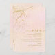 A watercolor background in shades of rose gold is topped by an abstract of fine gold lines and glittering lighting effects to create the pieces of this beautiful wedding suite. The wedding 'Menu' card shown here also features elegant calligraphy and an off-centered layout for visual appeal. Easily add your own initials, wedding date and menu selections using the provided template. Search ID867 to see other pieces and color choices for this set.