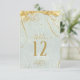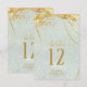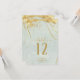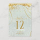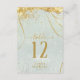 A watercolor background in shades of sage green is topped by an abstract of fine gold lines and glittering lighting effects to create the pieces of this beautiful wedding suite. The wedding table number card shown here also features elegant calligraphy and a template to easily add your own names, wedding date and table numbers. Search ID867 to see other pieces and colour choices for this set.