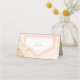 A watercolor background in shades of rose gold is topped by an abstract of fine gold lines and glittering lighting effects to create the pieces of this beautiful wedding suite. The wedding table place card shown here also features a beautiful gradient frame on the front to hold guest names and table numbers. Easily add your own names and wedding date on the back using the provided template. Search ID867 to see other pieces and colour choices for this set.