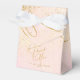 A watercolor background in shades of rose gold is topped by an abstract of fine gold lines and glittering lighting effects to create the pieces of this beautiful wedding suite. The wedding 'Thank You' favour box shown here also features 'Thank You' calligraphy along with the bride and groom's names and wedding date. Search ID867 to see other pieces and colour choices for this set.