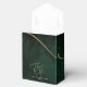 A watercolor background in shades of emerald green is topped by an abstract of fine gold lines and glittering lighting effects to create the pieces of this beautiful wedding suite. The wedding 'Thank You' favour box shown here also features 'Thank You' calligraphy along with the bride and groom's names and wedding date. Search ID867 to see other pieces and colour choices for this set.