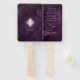 A watercolor background in shades of plum purple is topped by an abstract of fine gold lines and glittering lighting effects to create the pieces of this beautiful wedding suite. The front of the wedding hand fan shown here also features a gradient, diamond-shaped frame to hold the bride and groom's initials and wedding date. Easily add your wedding party and ceremony details to the back using the provided template. Search ID867 to see other pieces and colour choices for this set.