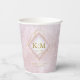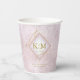 A watercolor background in shades from soft lavender to mauve is topped by an abstract of fine gold lines and glittering lighting effects to create the pieces of this beautiful wedding suite. The wedding paper cup shown here also features a gradient, diamond-shaped frame to hold the bride and groom's initials and wedding date. Easily add a personal thank you message using the provided template. Search ID867 to see other pieces and color choices for this set.