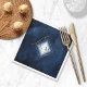 A watercolor background in shades from royal blue to navy is topped by an abstract of fine gold lines and glittering lighting effects to create the pieces of this beautiful wedding suite. The wedding paper napkin shown here also features a gradient, diamond-shaped frame to hold the bride and groom's initials and wedding date. Search ID867 to see other pieces and colour choices for this set.