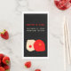 This customisable napkin paper showcases at its bottom, two joined circular organic shapes in red and cream symbolising love, couple and marriage. The following words are inscribed: couple names and date and place of the wedding. The background is black.