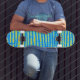 A colourful abstract design with colourful stripes which perhaps looks like a print from the ridges of a very large glowing fingerprint, hence the title.