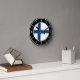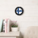 Finland Flag Elegant Round Clock with the Finland flag positioned in the middle and lovely white clock numbers on the clock edge. Delightful black background with the white oval elements finalize the design putting emphasis on the elegance. Beautiful combination of black and white with the skillful integration of the national flag colors make this clock the perfect gift and the great show piece on the wall. © CountriesOfTheWorld