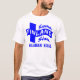 blue / white print, smaller on the back. Select your shirt's style and colour.