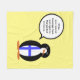Ms. Penguin travelled to Finland and added a vest of the Finnish flag to her collection. She wears it proudly on this item. You can add words to her talk bubble and make her say anything fit to print.