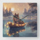 Set sail into the magic of the holiday season with this beautifully detailed illustration, showcasing a proud dog sitting in a festively decorated boat, gliding across a serene Christmas lake. The twinkling lights from nearby pine trees reflect off the water, casting a warm, festive glow that enhances the cosy ambiance. Ornaments dangle from the boat's sides, while glowing lanterns light the way, creating a scene that captures the true essence of Christmas warmth and joy. This nostalgic artwork brings a touch of holiday magic to any space, perfect for those who cherish the spirit of the season.