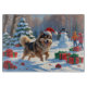 A fluffy Finnish Lapphund runs joyfully through the snowy winter scene, wearing a festive red Christmas hat. This charming design showcases the breed’s thick coat, playful personality, and affectionate nature while capturing the warmth and magic of the holiday season. A delightful winter moment full of festive cheer.