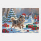 A fluffy Finnish Lapphund runs joyfully through the snowy winter scene, wearing a festive red Christmas hat. This charming design showcases the breed’s thick coat, playful personality, and affectionate nature while capturing the warmth and magic of the holiday season. A delightful winter moment full of festive cheer.