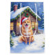Finnish Spitz Snowy Cabin Santa Hat Christmas Art Medium Gift Bag