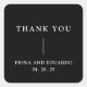 Contemporary and modern wedding stickers featuring a simple and minimal design with "Thank You" along with your names and wedding date in bold typography. This minimalist black typographic design can be customised to any colour you choose in the design editing tool.