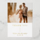 Contemporary and modern foil wedding thank you card featuring a simple and minimal design with "Thank You" along with your names and wedding date in bold typography below your favourite photo. The back has a second picture, your three initial monogram and your personalised message. This minimalist typographic wedding thank you card features all text on the front in real foil.
