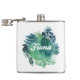 Watercolor foliage background in blues and green with "Fiona" text in centre