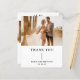 Contemporary and modern style budget wedding thank you card featuring a simple and minimal design with "Thank You" along with your names and wedding date in bold typography below your favourite photo. The back has a second picture, your three initial monogram and your personalised message. This minimalist black and white typographic wedding thank you card can be customised to any colour you choose in the design editing tool.