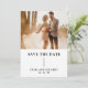 Contemporary and modern wedding save the date card featuring a simple and minimal design with "Save the Date" along with your names and wedding date in bold typography below your favourite photo. The back has a second picture, your three initial monogram and your personalised message. This minimalist black and white typographic wedding save the date card can be customised to any colour you choose in the design editing tool.