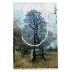 An autumn art design of a fir tree and a person enjoying some peace and quiet.