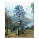 An autumn art design of a fir tree and a person enjoying some peace and quiet.