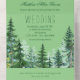 Fir tree wedding invitations with beautiful watercolor forest of fir trees on a choose your own colour background. These beautiful rustic fir tree wedding invitations are easily customised for your event by simply adding your details in the font style and wording of your choice.