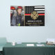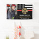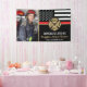 This design features a firemen's flag with black and white stripes, and a thin red line stripe as well. "Congratulations" and a fireman's badge sits above the name of the graduating firefighter. Celebrate in style with this customisable photo banner!
