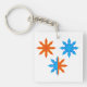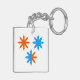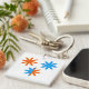 Keep your keys organised with this eye catching fire and ice eight point star keychain. The miniature version of this vibrant symmetrical graphic showcases the intense contrast between orange and blue elemental tones. This modern geometric accessory is a great way to add a pop of colour and personality to your bag or car keys. The celestial starburst motif is both symbolic and stylish, making it a perfect small gift or party favour for those who love abstract art and sacred geometry. Carry a piece of elemental fusion wherever you go.