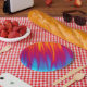 Fire and Ice - Red Blue Yellow Stripe Swoosh Paper Plate