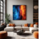 Intense abstract art exploring the clash between deep icy blue and blazing orange heat. Fragmented textures evoke opposing emotions — calm vs. passion, silence vs. explosion. Perfect for spaces seeking visual impact and conceptual depth. A piece that provokes reflection and awakens the soul with its dynamic, contrasting energy.
