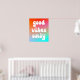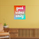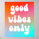 A groovy retro "good vibes only" typography design on a vivid orange, hot pink and aqua blue gradient on a poster.
