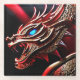 A menacing fire breathing dragon with vibrant red and gold scale, with blue eyes showcasing its terrifyingly large gold teeth, realistic shading and textures, high detail, close-up angle, dark background with highlights, digital painting 4k resolution, cinematic lighting, fear-inducing atmosphere.On this artificial intelligence photo.