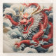 A menacing fire breathing dragon with vibrant red and white scale, showcasing its terrifyingly large teeth, realistic shading and textures, high detail, close-up angle, dark background with highlights, digital painting 4k resolution, cinematic lighting, fear-inducing atmosphere.On this artificial intelligence photo.with a gold stripe down the side