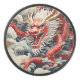 A menacing fire breathing dragon with vibrant red and white scale, showcasing its terrifyingly large teeth, realistic shading and textures, high detail, close-up angle, dark background with highlights, digital painting 4k resolution, cinematic lighting, fear-inducing atmosphere.On this artificial intelligence photo.with a gold stripe down the side