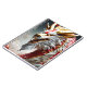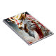 A menacing fire breathing dragon with vibrant red white and gold scales, showcasing its terrifyingly large teeth, realistic shading and textures, high detail, close-up angle, dark background with highlights, digital painting 4k resolution, cinematic lighting, fear-inducing atmosphere.On this artificial intelligence photo.