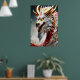 A menacing fire breathing dragon with vibrant red white and gold scales, showcasing its terrifyingly large teeth, realistic shading and textures, high detail, close-up angle, dark background with highlights, digital painting 4k resolution, cinematic lighting, fear-inducing atmosphere.On this artificial intelligence photo.