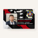 Easily identify yourself and your fireman at the station with these thin red line flag custom personalised photo, logo, bar code, firefighter identification card badges. Personalise with firefighter photo, station logo, name, id number and fire department. Customise the back with your fire barcode, or any other information. This thin red line fireman id card badge is perfect for all firefighters, volunteer firefighters, firemen, chief, captain and lieutenant. COPYRIGHT © 2020 Judy Burrows, Black Dog Art - All Rights Reserved. Fire Department Custom Photo Logo Firefighter ID Badge