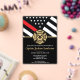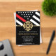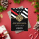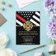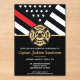 This design features a firemen's flag with black and white stripes, and a thin red line stripe as well. "Congratulations" and a fireman's badge sits above all of the party details for the retiring firefighter, lieutenant, or chief's retirement party.