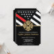 This design features a firemen's flag with black and white stripes, and a thin red line stripe as well. "Congratulations" and a fireman's badge sits above all of the party details for the retiring firefighter, lieutenant, or chief's retirement party. The invitations can also be customised for a firefighter academy graduate.
