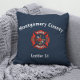 Stylish design for firefighters and their families, features red generic fire department logo on dark blue background. Customise with city or county department details or firefighter name in modern white font