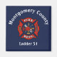 Stylish design for firehouses, firefighters and their families, features red generic fire department logo on dark blue background. Customise with city or county department details or firefighter name in modern white font
