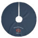 Stylish Christmas tree skirt for firefighters and other fire department employees, family and friends. Design features generic fire department logo in red, with customisable top and bottom text on dark navy blue background.