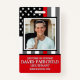 Personalise this thin red line firefighter flag ID badge for any firefighter, with an easily identifiable photo and name, id number and fire department. Customise the back with your fire station number and any contact information.